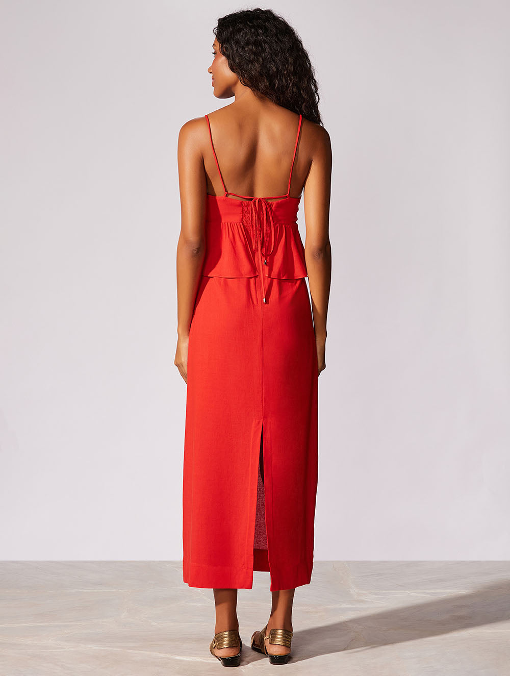 A soft peplum detail adds effortless movement, and the clean midi silhouette gives that timeless, versatile look perfect for resortwear, beach lunches or warm-weather evenings. Lightweight, feminine and ultra-flattering — the perfect summer dress for days in the sun and nights on holiday.